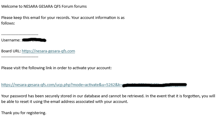 When you register an account, an email is sent to you containing a link to activate your account. This is done to ensure that only people with active email accounts can use our system.